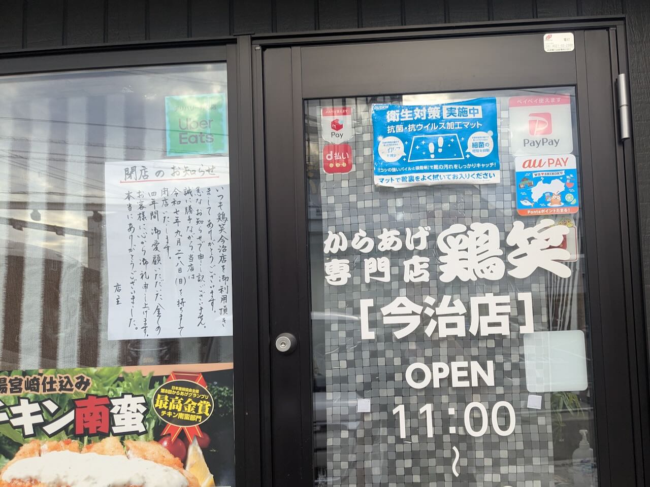 先日の中華そば千に続き、今回も突然の閉店のお知らせです。