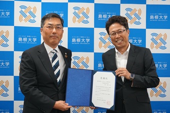 大谷学長からは,協和地建コンサルタント株式会社,株式会社山陰合同銀行それぞれに感謝状を贈るとともに「このたびご寄贈いただき感謝申し上げる。今後も地方にある大学として社会あるいは地域で活躍できる人材の育成し,地域へ貢献していきたい。」と御礼の言葉がありました。