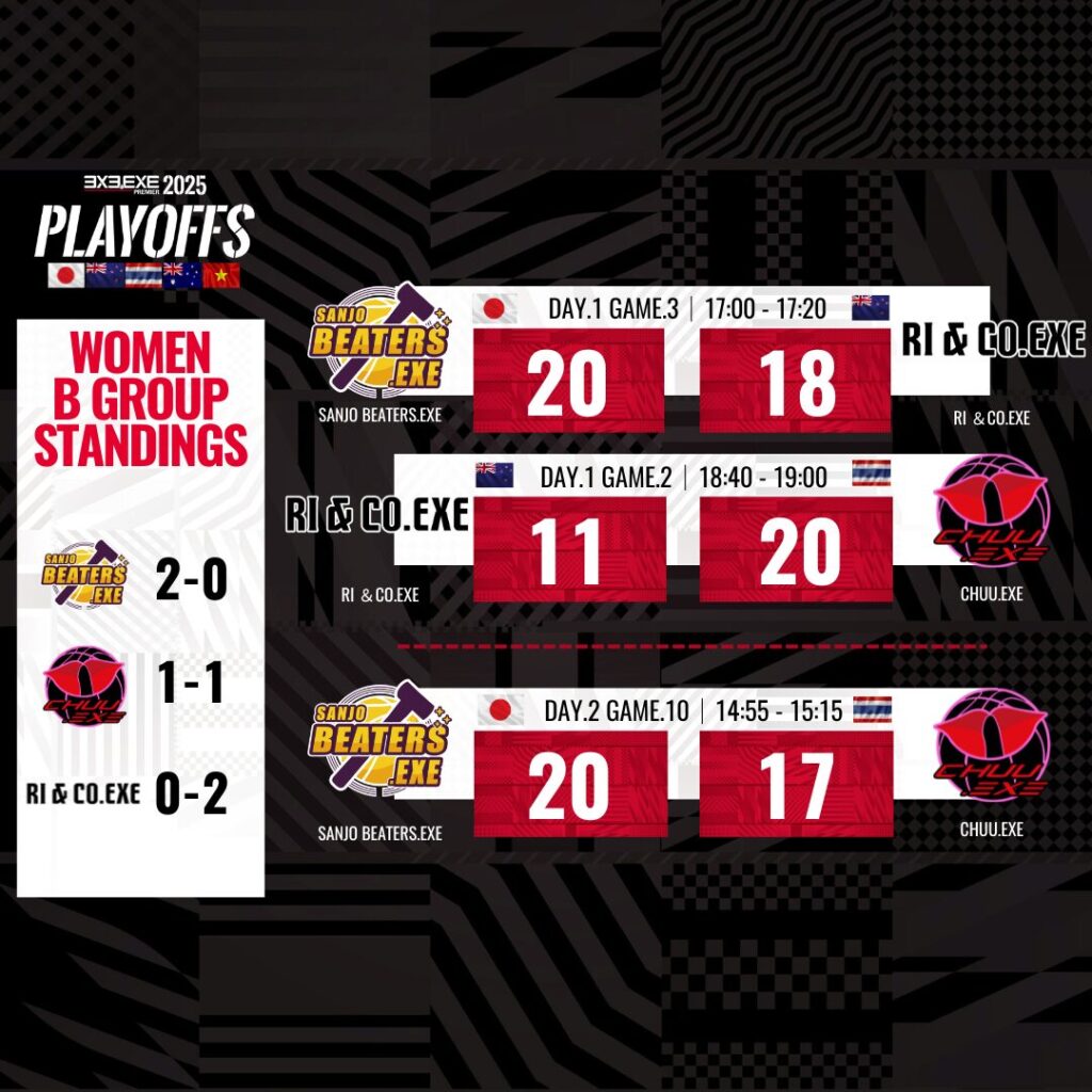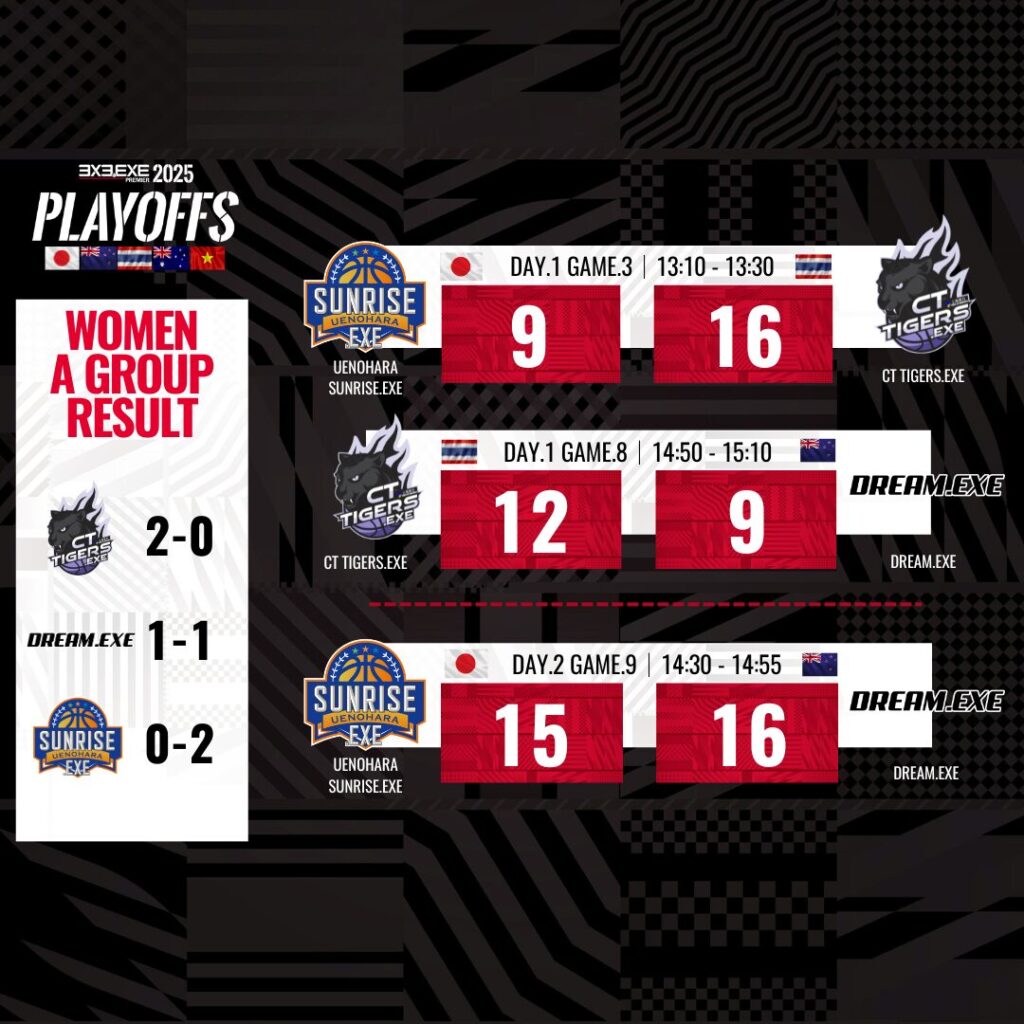 タイ2位でPLAYOFFS初出場を果たした彼女たちは、このプレーオフに向けて毎日のように敵チームの研究を重ねてきた。その努力が実を結んだ形となり、初戦で日本1位のUENOHARA SUNRISE.EXEを撃破。続くニュージーランド2位のDREAM.EXEに勝利。そして28日の決勝では、日本2位のSANJO BEATERS.EXEを破り優勝をつかみ取った。男子同様に女子も日本以外のチームが優勝を勝ち取るのは、2018年から始まった女子カンファレンスの歴史上初の出来事。タイ1位のCHUU.EXEがタイの3×3代表メンバーが揃っていたこともあり、完全にダークホースとして優勝をさらった。