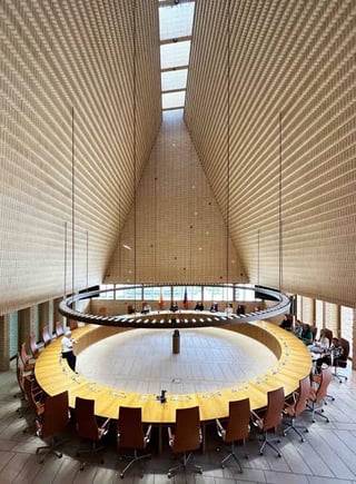 ちょっとリヒテンシュタイナー、 私はそれについての情報を見つけることができませんが、あなたの議会の会議スペースは、映画博士Strangeloveの戦争室に驚くほど似ています。特にこのデザインが採用された理由を誰かが知っていますか? Liechtenstein