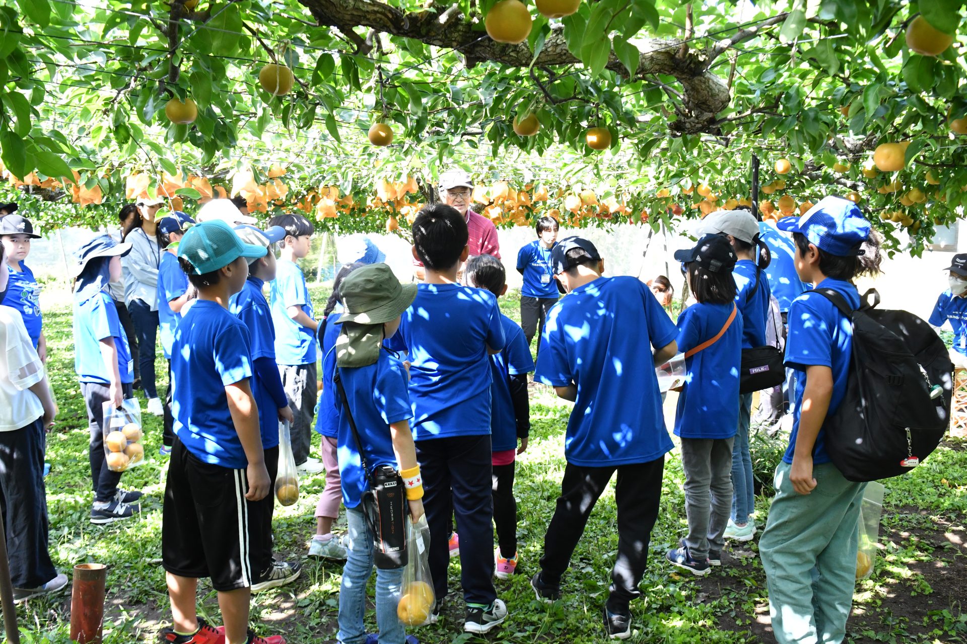 午前中は加賀谷果樹園(潟上市天王)さまご協力のもと、梨の収穫体験を行いました。