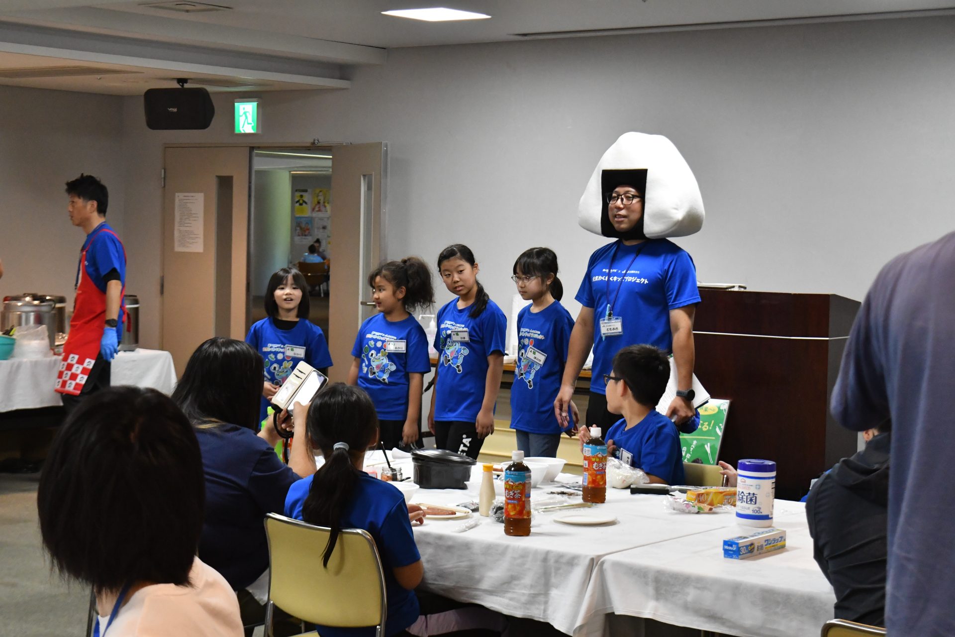 思い思いの具材を入れ、大小さまざまなおにぎりを作りました。自分たちで作ったおにぎり、ご用意いただいた豚汁、ウインナーを一緒に食べました。