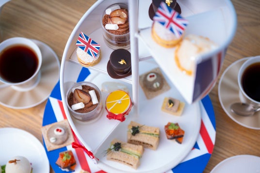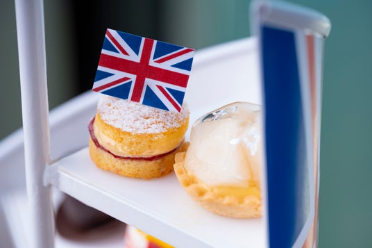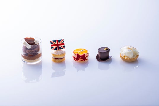 イギリスの国旗ユニオンジャックをイメージしたスタンドでご提供するのは、秋の味覚の栗やレモン、洋梨などを取り入れたスイーツ5種とスコーン、セイボリー5種の、計11種のメニュー。スイーツには、熊本県産の和栗を使用したモンブランクリームと、2種のスポンジケーキを重ね、トップに栗を添えた「栗のトライフル」や、バターケーキの間にラズベリージャムとクリームを挟んだイギリスの伝統的な菓子で、イギリス王室のヴィクトリア女王がアフタヌーンティーにいつもこのケーキを食べていたことにちなんで名づけられた「ヴィクトリアケーキ」をご用意。また、秋が旬のレモンを使用した「リボン」は、レモンジュレと栗のクリームの層をホワイトチョコレートで包んだ見た目も可愛らしいスイーツです。今年の秋冬のファッショントレンドでもあるリボンを、優雅で華やかな英国らしい上品さを表現するアイテムとして取り入れました。