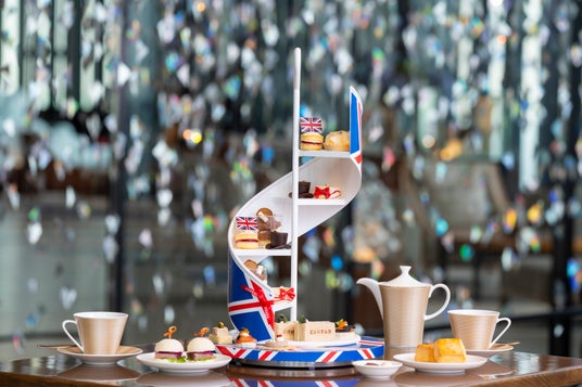 リボンやユニオンジャックアイテムを身に着けてご来店いただいたお客様には、スパークリングワイン(またはノンアルコールカクテル)1杯をプレゼントいたします。
