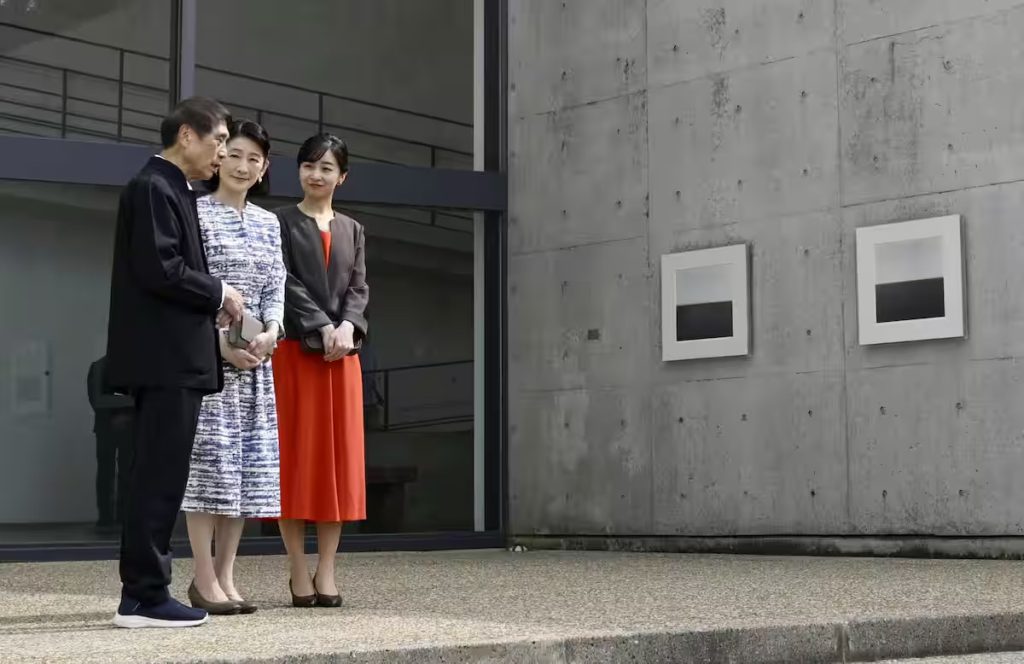 「ベネッセハウスミュージアム」で作品を鑑賞される秋篠宮妃紀子さまと次女の佳子さま=10月2日午後、香川県直島町