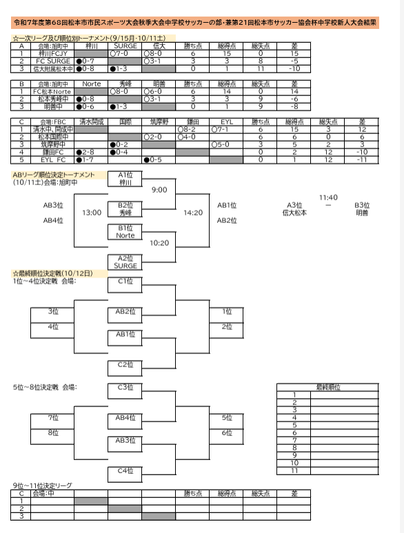 ■第68回松本市市民体育祭秋季大会中学校サッカーの部・兼第21回松本市サッカー協会杯中学校新人大会