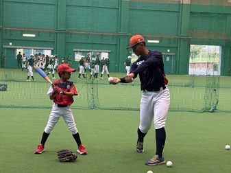 バッティング練習では、選手らからフリーバッティング形式でスイングフォームなどを教わりました。今回の野球教室では、子どもたちはクラブチームの垣根を越えてお互いに声を掛け合いながら練習に励んでいました。