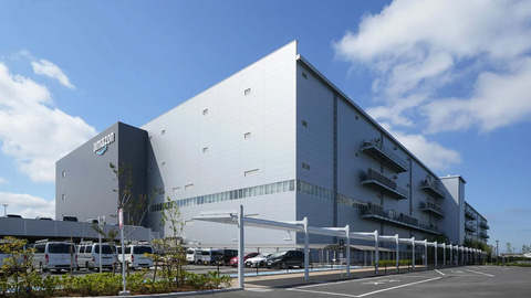 千葉みなとフルフィルメントセンターは、2023年に開設された物流拠点。延べ床面積は12万平方m(東京ドーム約2.5個分)。商品棚を持ち上げて移動する「Amazon Robotics」の先進技術を導入した拠点として国内最大規模を誇る。