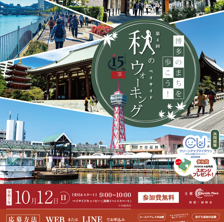 ベイサイドプレイス博多で秋の恒例イベント「第4回 秋のベイサイドウォーキング!博多のまちを歩こう!」が10月12日(日)に開催されます。