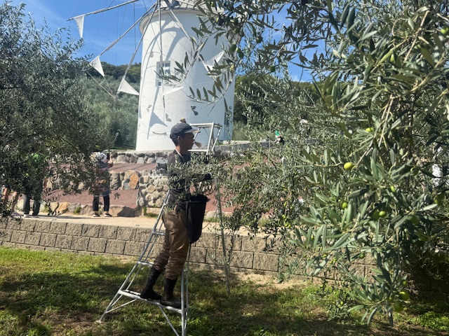 果実を一つひとつ収穫中の公園事業部、池内 翔さんは「過去5年ぶりにここまで大きく育ち、樹高を下げるなど収穫を考えた剪定もあり今年は収穫しやすい。夏の水やり等は大変だったが、1日約160キログラムを目標に収穫していく」と話している。初日は、180キログラムほどを収穫。 小豆島オリーブ公園には約2000本の木があり、品種も多い。12月頃まで、品種ごとにタイミングを計りながら新漬け用、オイル用と収穫が続く。
