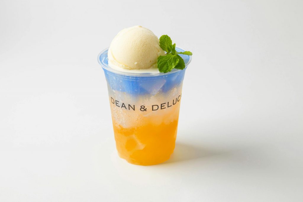 ブルースピルリナの色の対比や複数の柑橘の味わい、ジュレの食感がたのしいフロートドリンク。