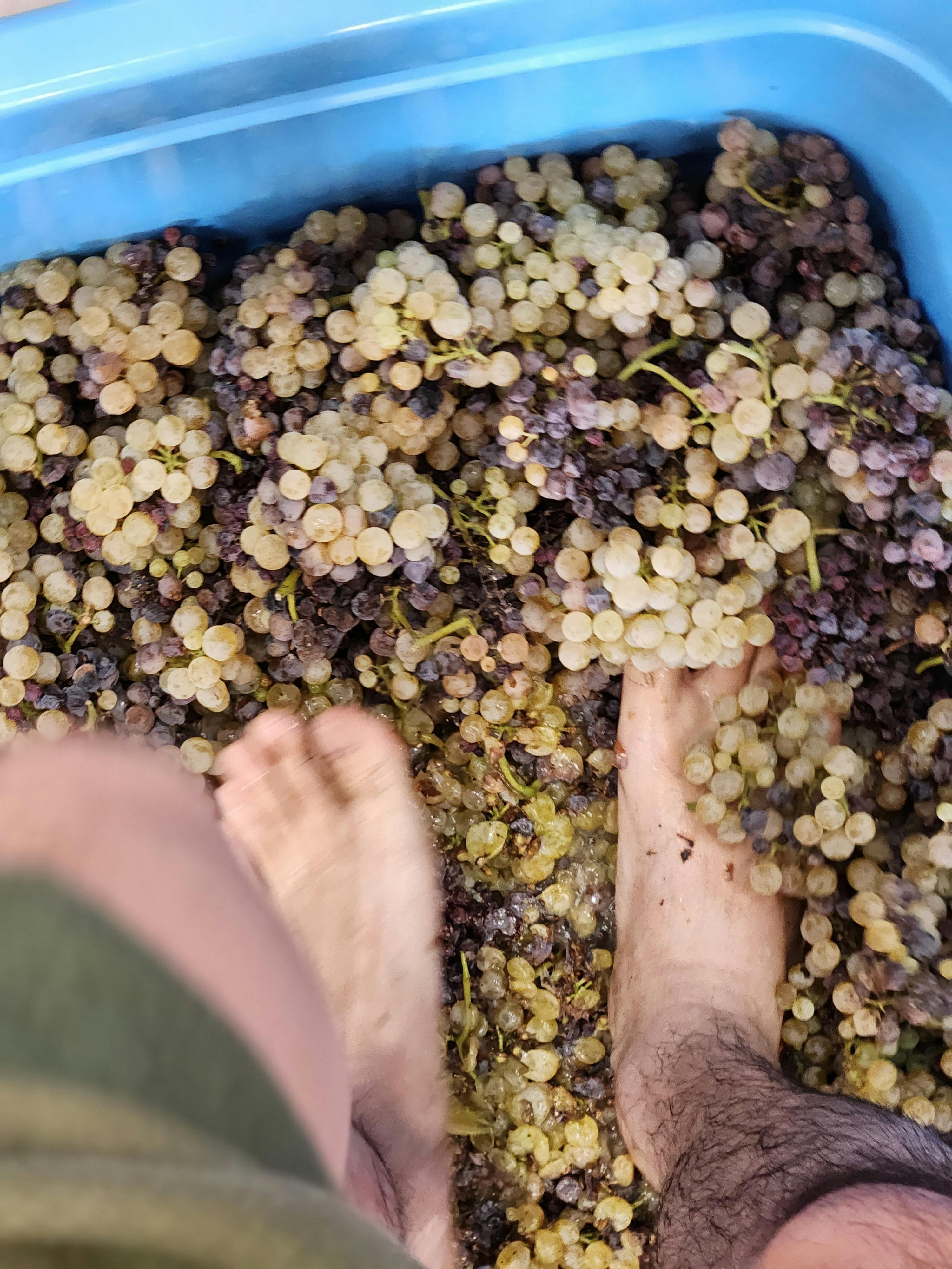 また、嫌な方もいるかと思いますが、より古代の方法で、本人自ら足踏みして果汁を抽出しました!笑