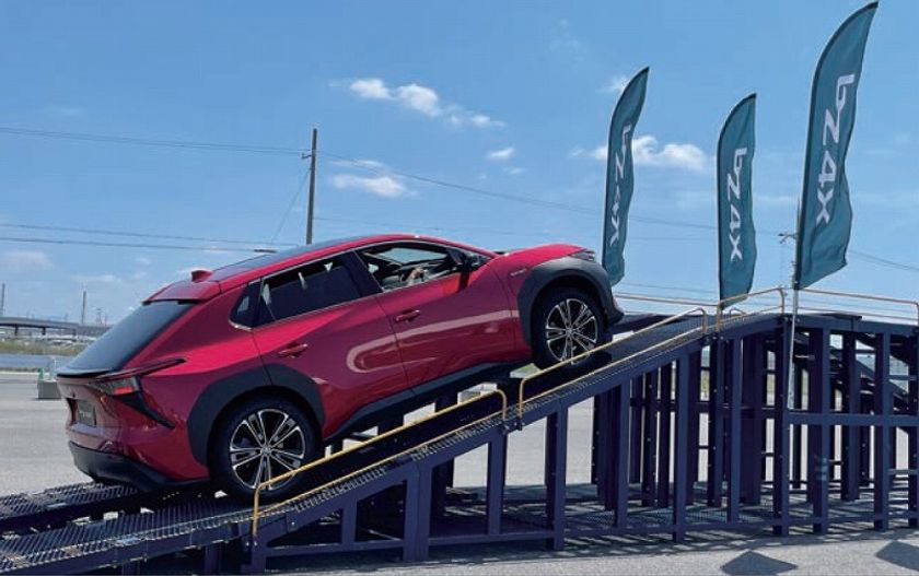 電動車SUV体験のコーナーでは、インストラクターが運転する新型bZ4Xや人気のトヨタSUVに同乗して急勾配を走破し、オフロード性能をリアルに体感することができます。EVキッズカートでは、EVを動力としたお子様用カートで会場内のコースを走行することができます。