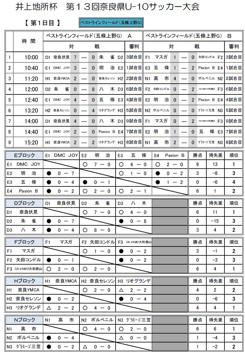 Hグループ:1位 リオグランデ、2位 奈良YMCA、3位 奈良セレソン