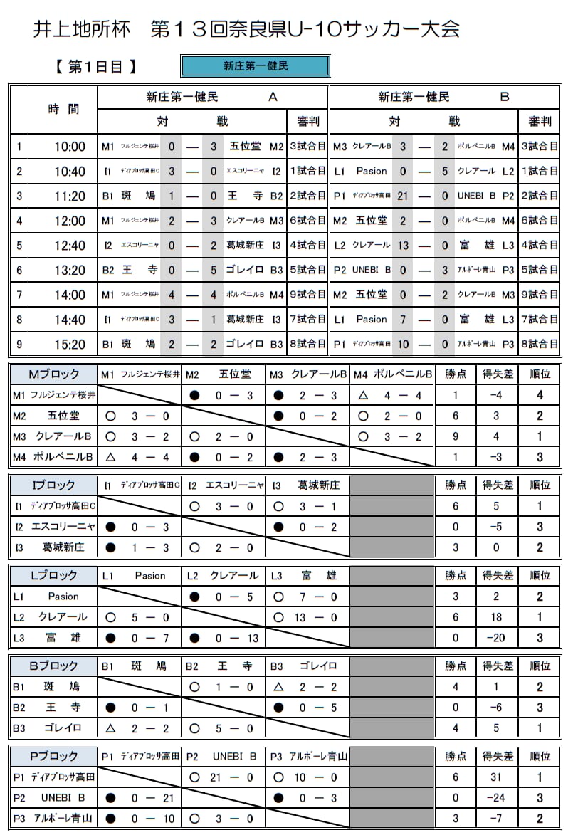 Mグループ:1位 クレアールB、2位 五位堂、3位 ポルベニルB、4位 フルジェンテ桜井