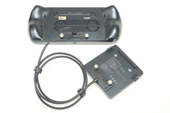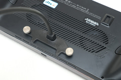 少し気になったのは本体側に付くケーブルの向きで、背面に対して90度垂直に出している点である。これにより、机の上に平置きはできず、本体の形状およびケーブルコネクタ左右の小さな突起により、机に対して垂直に近い角度でしか設置できなくなる。背面を下にした状態ではケーブル根元にテンションがかかり、逆に画面が下というのはジョイスティックに負荷がかかるため望ましくない。