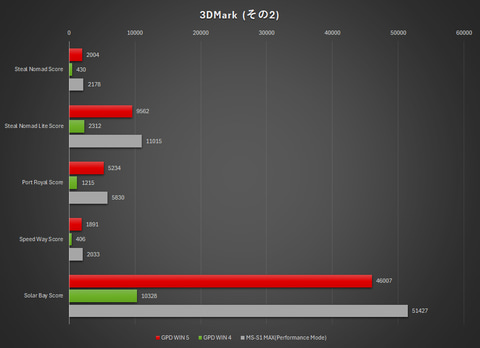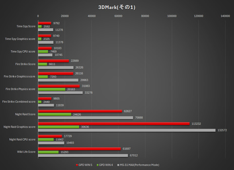 まずはPCMark 10の結果だが、前世代のGPD WIN 4を大きく上回り、技術が大きく進化したことを感じさせるスコアとなった。もちろん最新のRyzen AI 9 HX 370搭載版ではこの差は縮まるだろうが、2022年の初代モデルユーザーにとって十分魅力的な性能進化を果たしている。