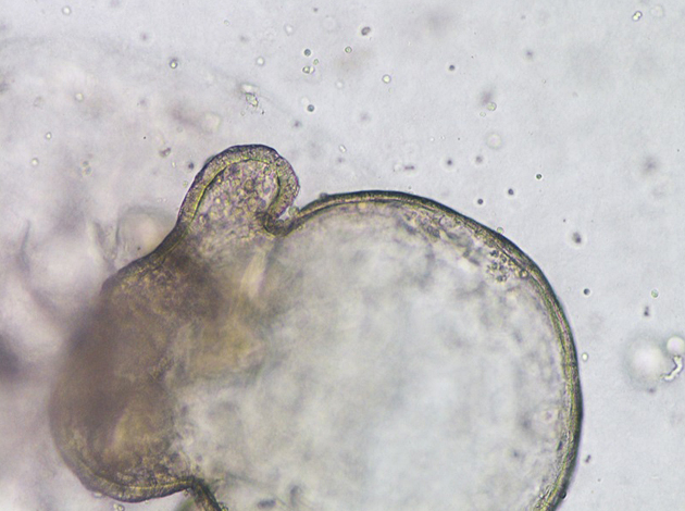 顕微鏡下のウサギ肝臓オルガノイド細胞