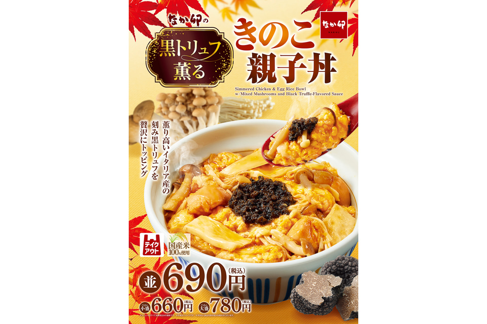 なか卯「黒トリュフ薫る きのこ親子丼」