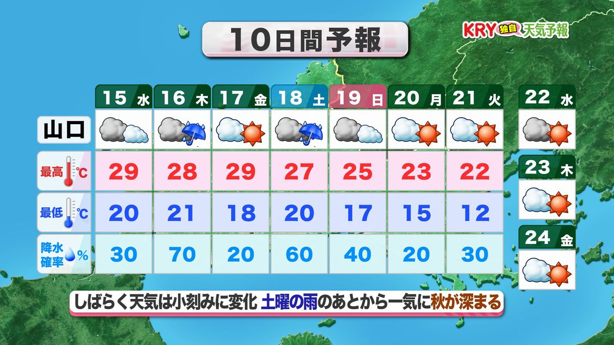 ●しばらく天気は小刻みな変化も 土曜の雨のあとから一気に秋が深まる