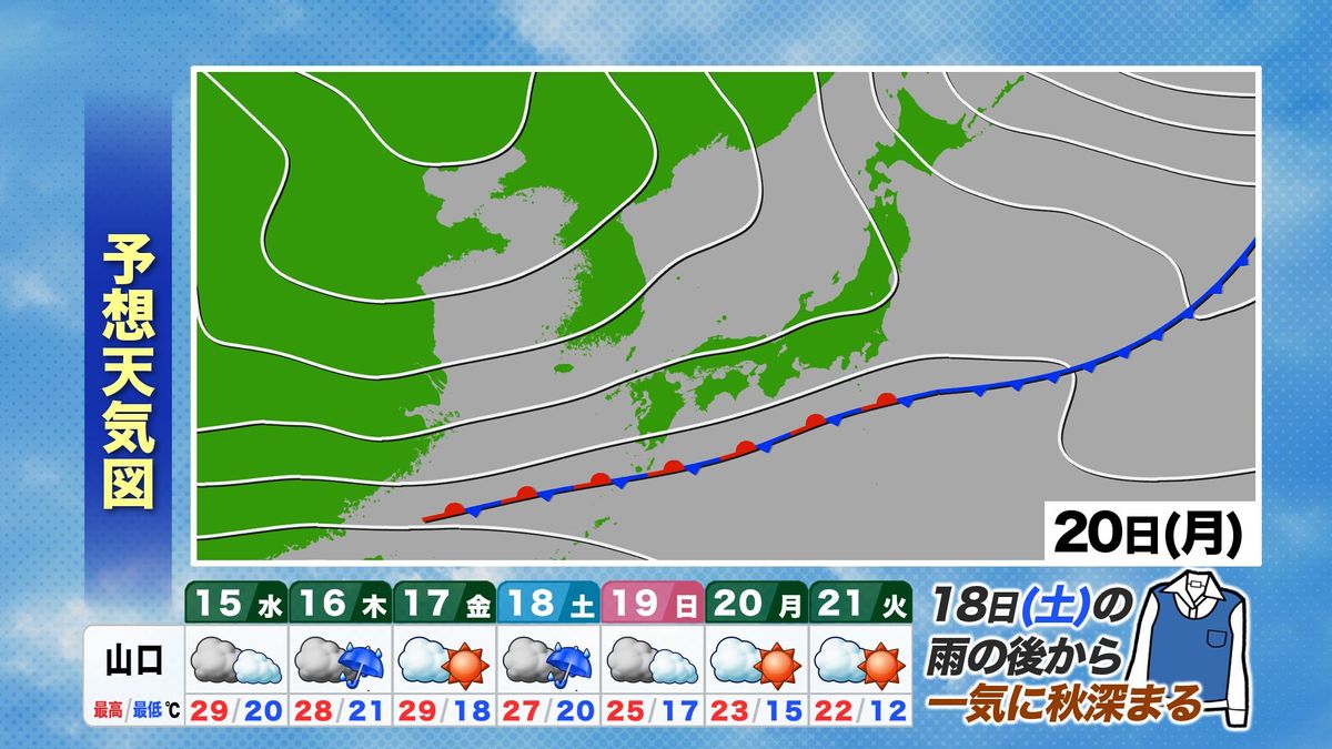 その後、木曜日、そして土曜日と天気が大きく崩れた後、日曜日から来週はガクッと気温が下がって、一気に秋が深まってくる、とみられます。