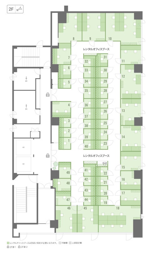席数:【コワーキングスペース】オープンスペース51席/固定席6席/【レンタルオフィス】49戸