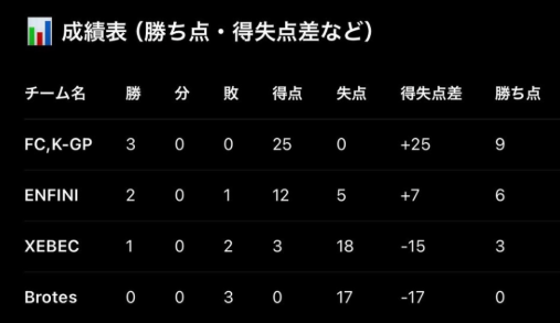 結果参照:ISS.F.C 、FC ENFINI Instagram