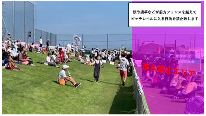 ・前方フェンスを越えてピッチ側に前出しすることは禁止です。