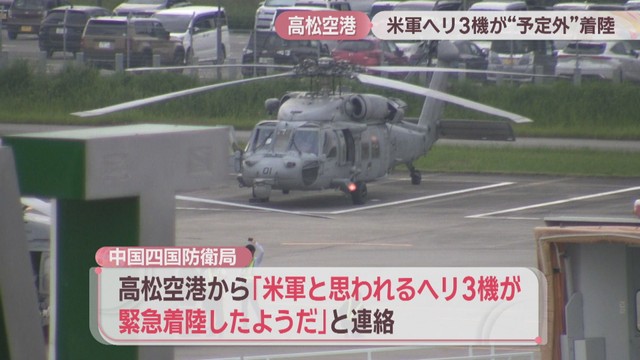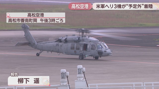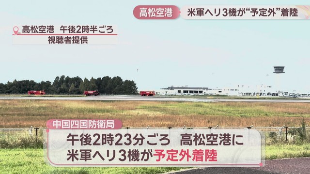 中国四国防衛局によりますと、16日午後2時23分ごろ、高松空港に米軍のヘリコプター3機が予定外の着陸をしました。