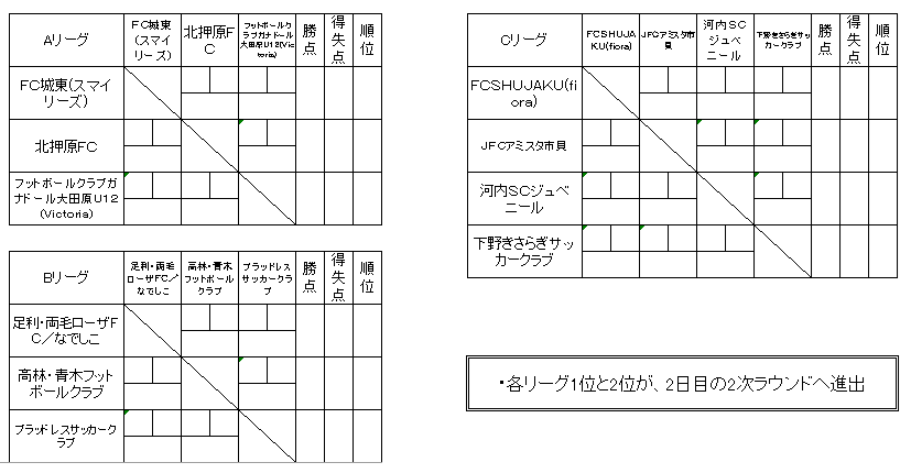 FC城東(スマイリーズ)、北押原FC、FCガナドール大田原U12(Victoria)