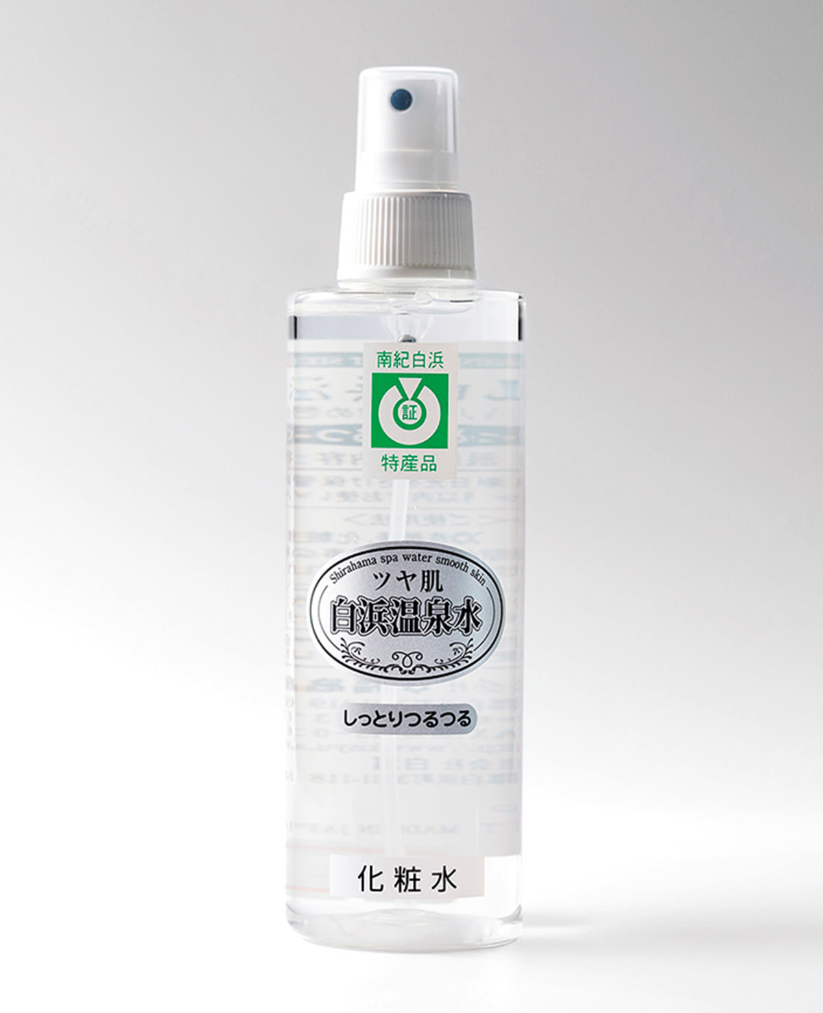 南紀白浜の温泉水100%の化粧水。スプレータイプで手軽に、顔、髪、体と全身にバシャバシャつかえるのも◎。リーズナブルなので、お土産にもぴったり!
