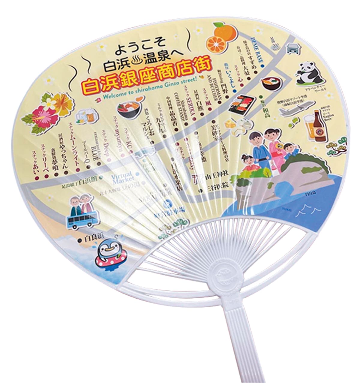 ママ製作の銀座商店街の地図入りウチワ。白良浜の海開きの日に配布。
