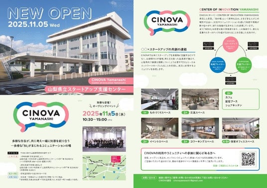 山梨県立スタートアップ支援センター「CINOVA Yamanashi(チノバ ヤマナシ)」。11月5日(水)開業を記念したオープニングイベントを開催します。