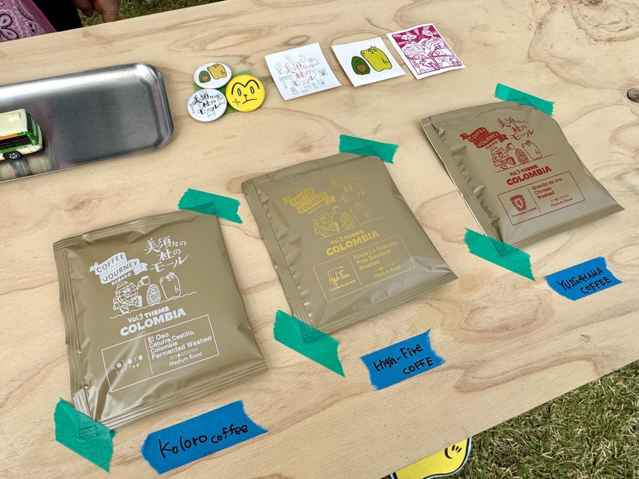 COFFEE JOURNEYの主催3店舗それぞれがローストした今回のテーマのコロンビア豆のコーヒードリップバッグを、3店舗の中から一つ選ぶことができます。他にコーヒーが苦手な方にはMMMオリジナルノベルティもありますのでいずれか一つを選んでくださいね。