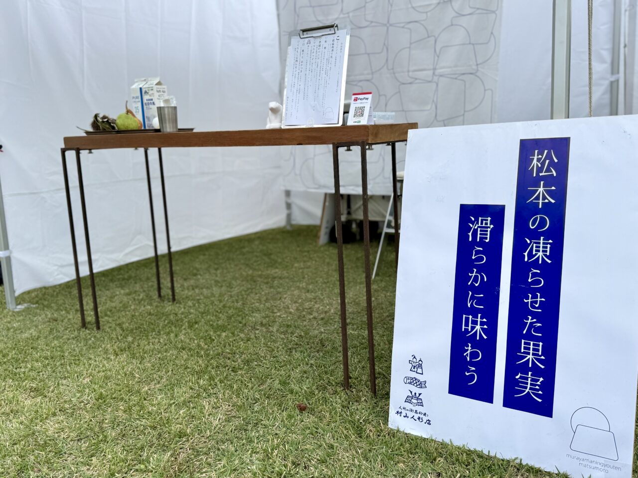 シンプルなお店ながらとても気になったのは「murayamaningyouten ice cream」。松本の 凍らせた果実を滑らかに味わうと書かれた看板を見て通る人が足を止めていました。