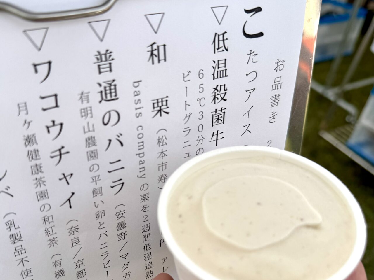 メニューの中から「和栗」をいただきました。素材の味を生かした優しい甘さで栗をしっかり感じられました。 老舗節句人形店が作るアイスクリームをぜひ味わってみてくださいね。