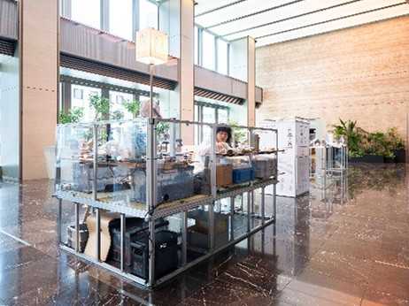 (右)日本橋室町三井タワー5Fロビー オープンスペースへのアート設置 青沼優介氏による作品