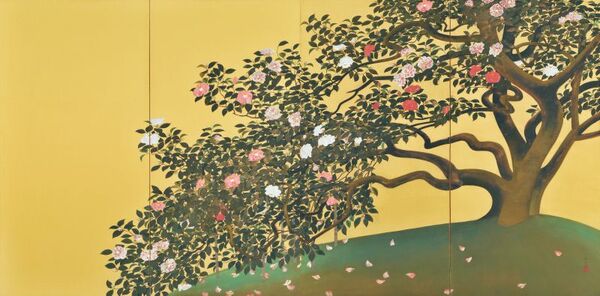 速水御舟《名樹散椿》【重要文化財】1929(昭和4)年 紙本金地・彩色 山種美術館