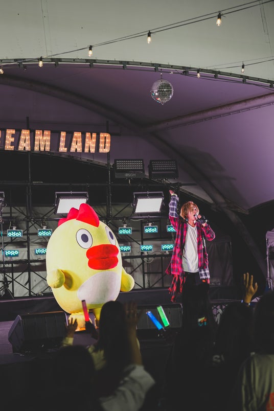 ダイノジ大谷は「今年全国たくさんのフェスに呼んでもらいましたが、間違いなく僕の中でこのドリームランドが一番のフェスです!」と会場を見渡し笑顔で堂々と言い放った。