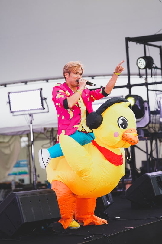 ライブのはじめに全エリア、出演者、スタッフ、出店者、ボランティア、警備、ご協賛者、ご来場者全ての人に感謝をインカムをつけたままマイクと共に述べた。