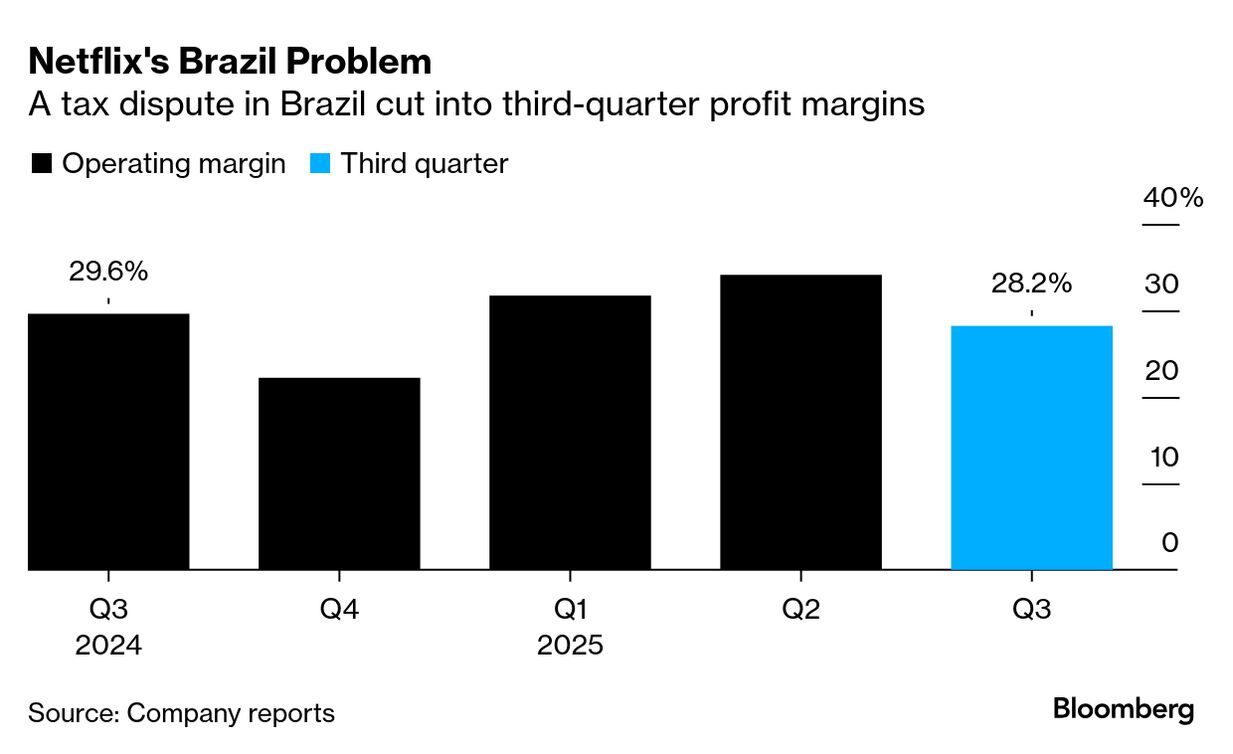 Netflixは、2022年にさかのぼるブラジル当局との税務問題を決着させるため、約6億1900万ドルを支払った。同社は過去の決算報告でこの件の潜在的リスクを示していたが、業績見通しには織り込んでいなかった。今後の支払い額はより少額になる。