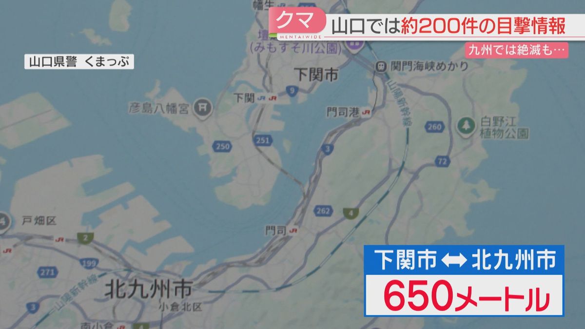 2012年に絶滅したとされる九州のツキノワグマ。ただ、ことし13件の目撃情報がある山口県下関市と、福岡県北九州市は最も近いところで650メートルほどしか離れていません。