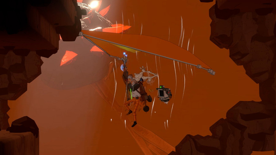 ゲームでは、奇妙な動植物や気候変動イベントに満ちた世界を探索し、手に入る素材で基地を築き、自動化システムを構築して生産を効率化します。食料を集め、狩りを行い、農場や飼育場を作ることで安定した食糧確保も可能。また、ホバーボード、ハンググライダー、グラップリングフックを活用することもできる。