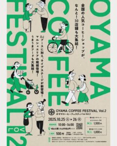 複数の団体が同時にイベントを開催するお祭りで、今年も「ピクニックマルシェ」や「クラフトビールとおばんざいと豚汁」など、20以上のイベントが予定されています。「OYAMA COFFEE FESTIVAL」もその一部です。