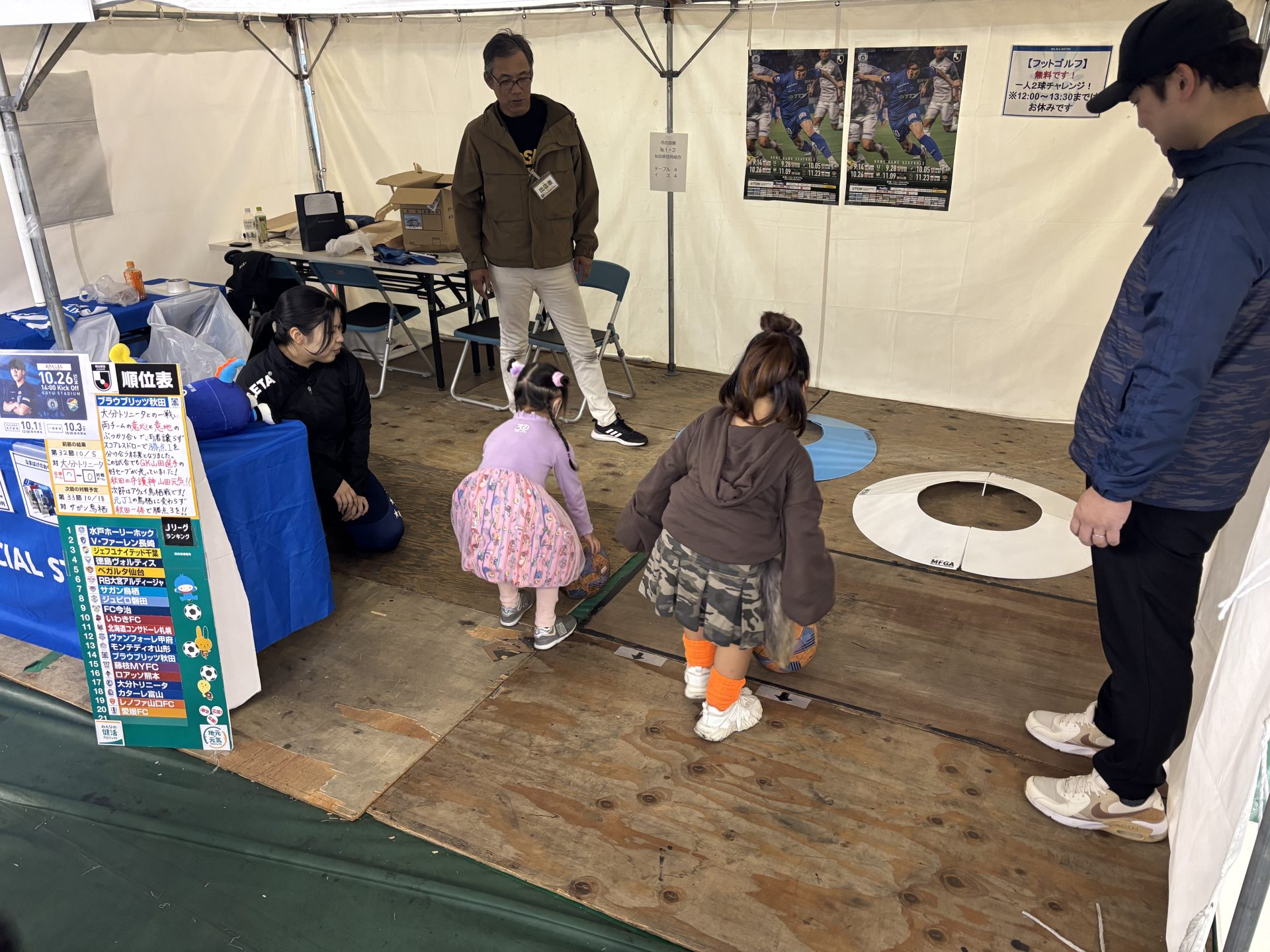 秋田県信用組合様ご協力のもと、ブラウブリッツ秋田では応援グッズが当たるガラポン抽選会やフットゴルフを実施しました。