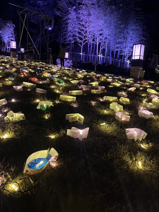 画像は長門市出身の童謡詩人「金子みすゞ」の詩をテーマにした冬のライトアップイベント「音信川うたあかり」