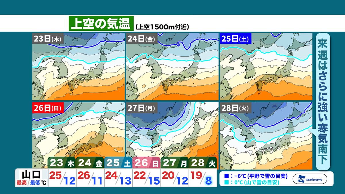 また、今後も季節の歩みは引き続き駆け足です。来週になると、今より強い寒気…山で雪となる目安の寒気が北陸方面まで南下する可能性が見えてきました。これにより県内でも来週は市街地でも最低気温1ケタになる日がやってくる、とみています。秋真っただ中から、いきなり冬支度も少し考えたい冷え込みも見えてきています。