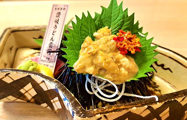 2023年11月、香川県立 多度津高校 海洋生産科 大坂吉毅教諭と、香川県を中心に和食店を展開する「遊食房屋」の細川明宏マネージャーが、「讃岐うどんの廃材をウニの餌として再活用できないか」という発想から開発が動き出し、10月20日にいよいよ「遊食房屋」丸亀店から販売が始まった「讃岐うどん雲丹」。