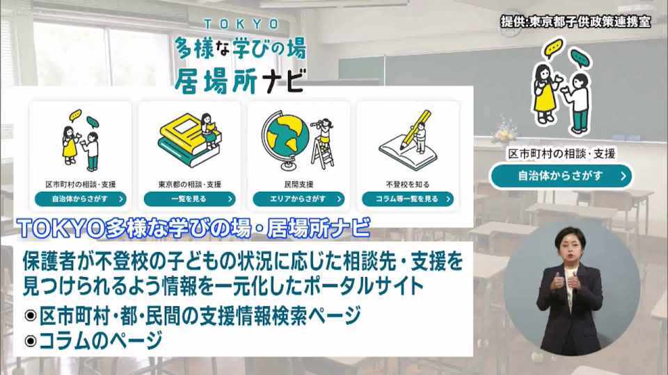 保護者が不登校の子どもの状況に応じた相談先や支援を見つけることができるよう情報を一元化したポータルサイト「TOKYO多様な学びの場・居場所ナビ ―不登校の小中学生支援ポータル―」が開設されました。