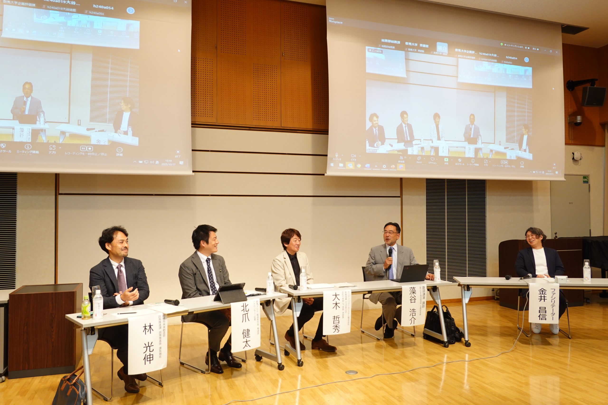 基調講演をいただいた藻谷氏に加え、地元の企業・メディア・自治体の各分野から登壇者を招き、パネルディスカッションが行われました。全体をとおし、群馬大学が地域により開かれ、積極的に関わる大学となるよう期待の声が寄せられました。